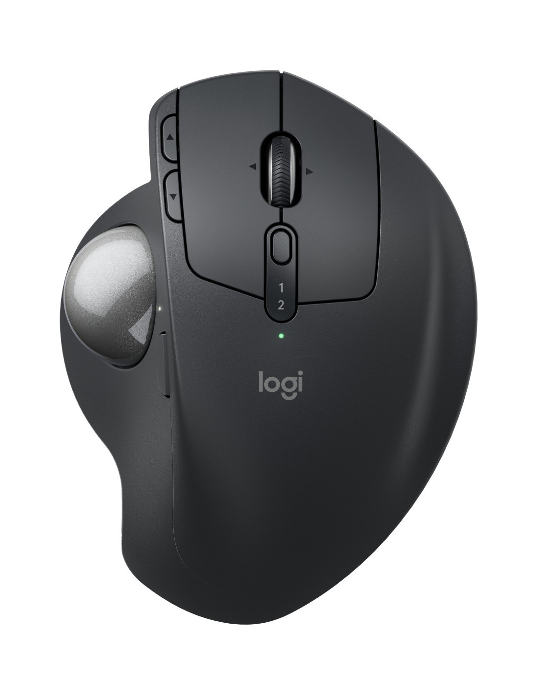 Logitech MX Ergo S. Factor de forma: mano derecha, Diseño vertical. Tecnología de detección de movimientos: Óptico, Interfaz del dispositivo: RF Wireless + Bluetooth, Resolución de movimiento: 2048 DPI, Tipo de botones: Botones presionados, Cantidad de botones: 8, Tipo de desplazamiento: Bola/Rueda, Aceleración (máx.): 10 G. Fuente de energía: Baterías. Color del producto: Grafito