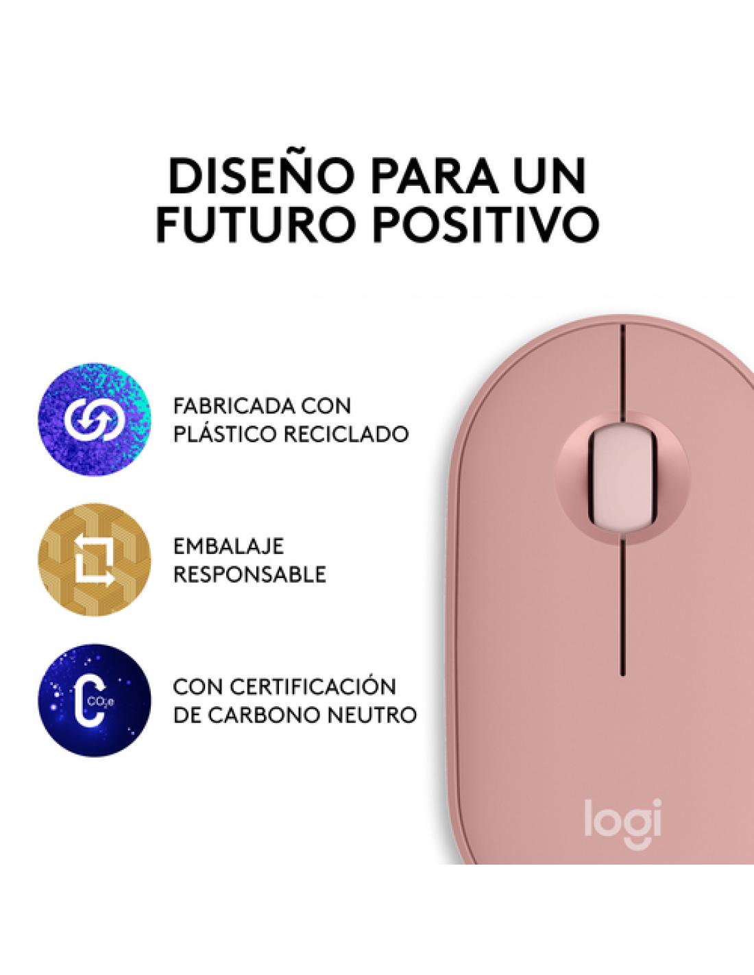 Logitech 910-007014. Factor de forma: Ambidextro. Tecnología de detección de movimientos: Óptico, Interfaz del dispositivo: RF Wireless + Bluetooth, Resolución de movimiento: 4000 DPI, Tipo de botones: Botones presionados, Cantidad de botones: 3, Tipo de desplazamiento: Rueda. Fuente de energía: Baterías. Color del producto: Rosa