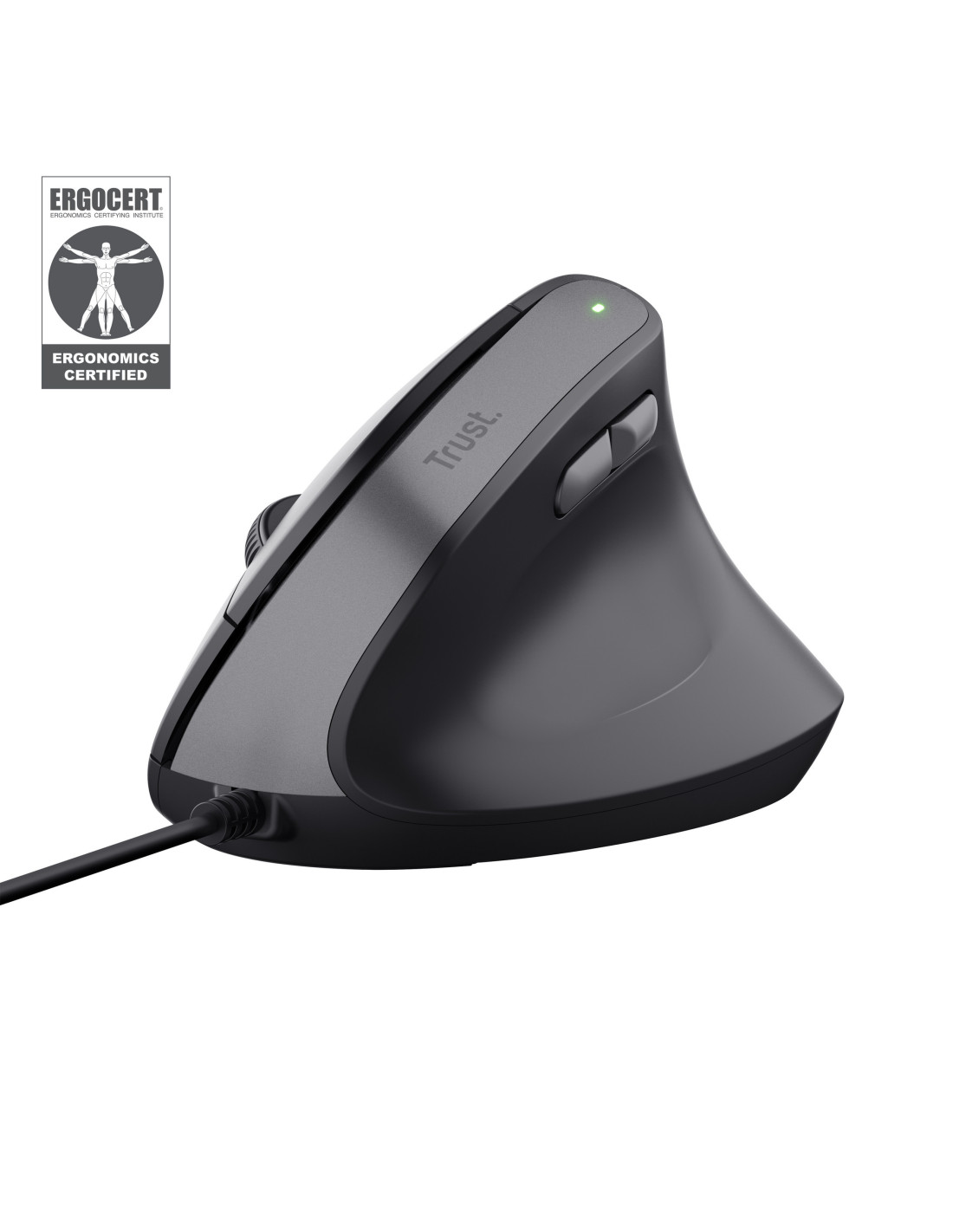 Trust Bayo II. Factor de forma: mano derecha, Diseño vertical. Interfaz del dispositivo: USB tipo A, Resolución de movimiento: 2400 DPI, Cantidad de botones: 6, Tipo de desplazamiento: Rueda. Fuente de energía: Cable. Color del producto: Negro