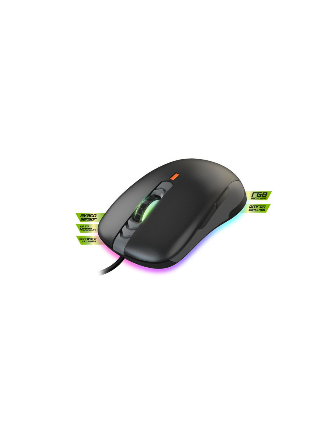 Consta de 6 botones. Cuenta con interruptores OMRON. Su sensor óptico Avago A3050 le permite ajustar hasta un máximo de 4000 Dpi para obtener el máximo poder durante tus partidas. El software ‘’Keep Out” le permitirá configurar todas las prestaciones que incorpora el X5PRO.