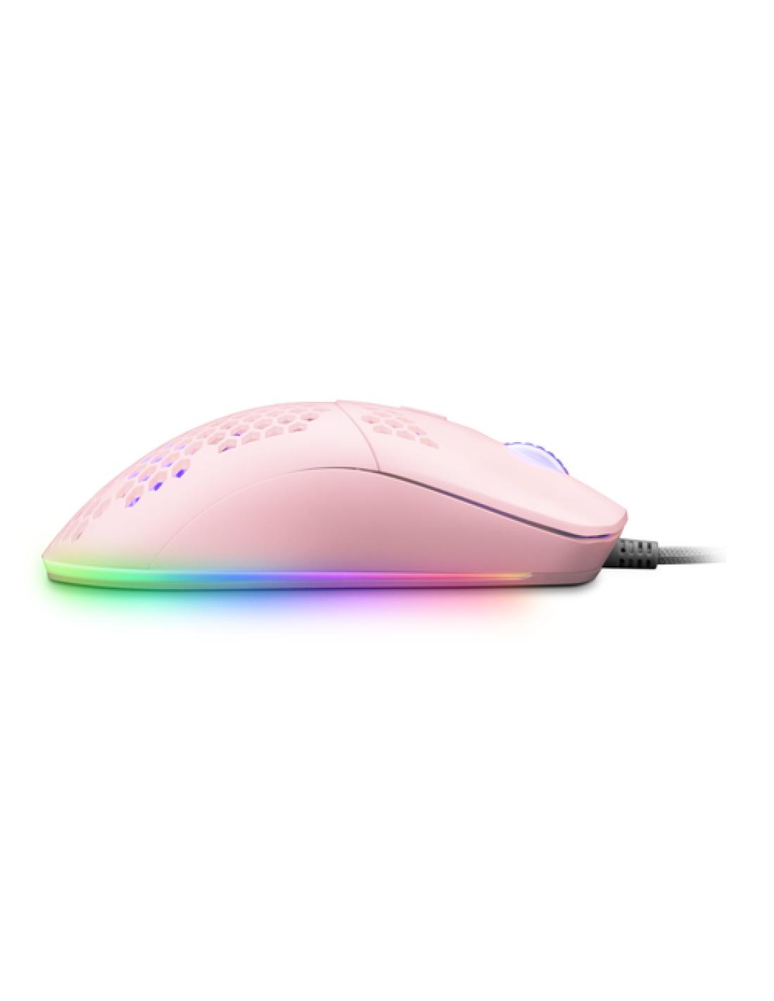 Mars Gaming MMAX, Ratón Ultraligero 69g, Óptico 12400DPI, Chroma RGB, Soft, Rosa