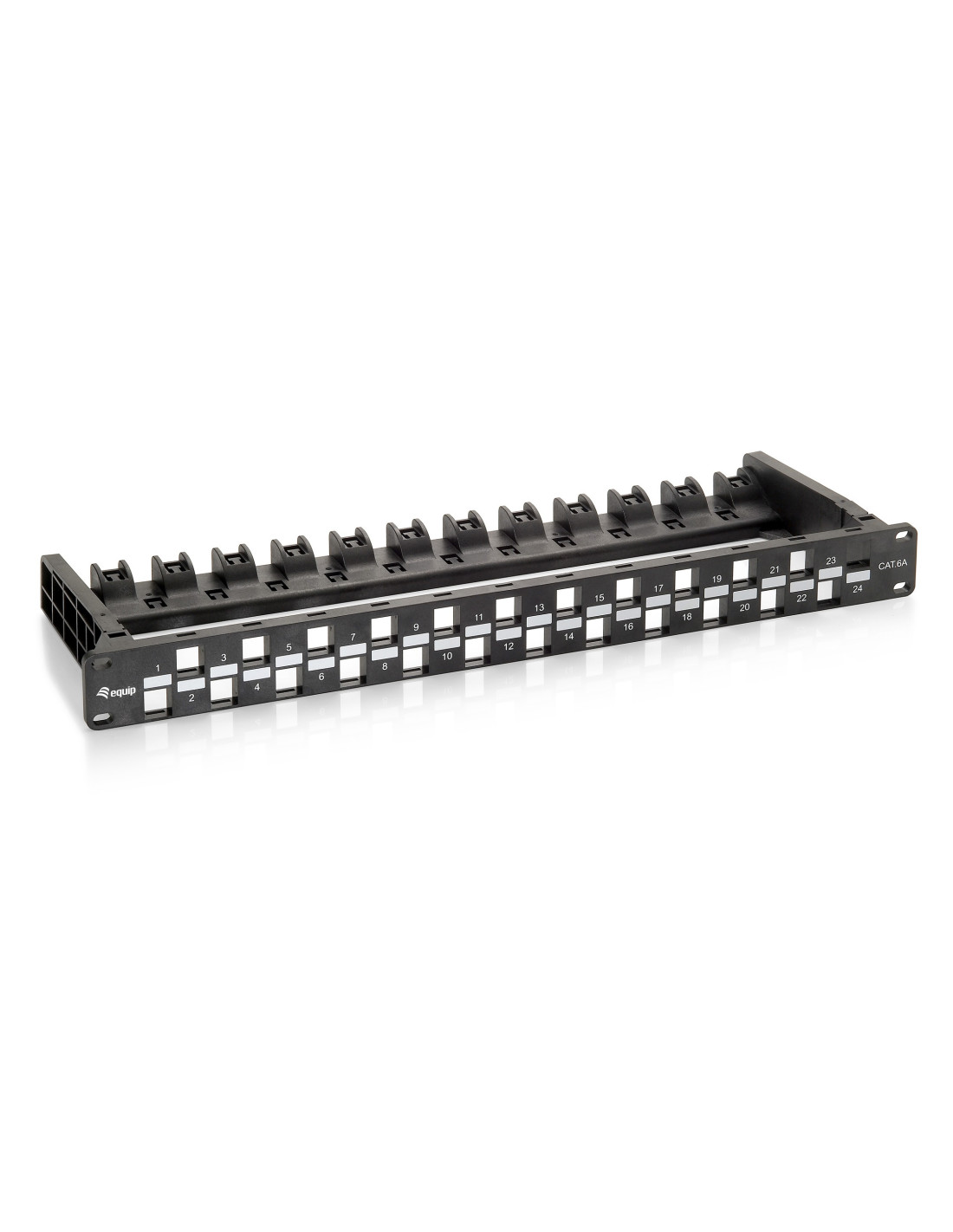 Equip 769225. Tipos de cable soportados: Cat6a. Montaje: Montaje en bastidor, Capacidad del rack: 1U, Color del producto: Negro. Certificados de conformidad: RoHS. Ancho: 44 mm, Altura: 483 mm, Profundidad: 159,5 mm. Ancho del paquete: 170 mm, Profundidad del paquete: 55 mm, Altura del paquete: 495 mm