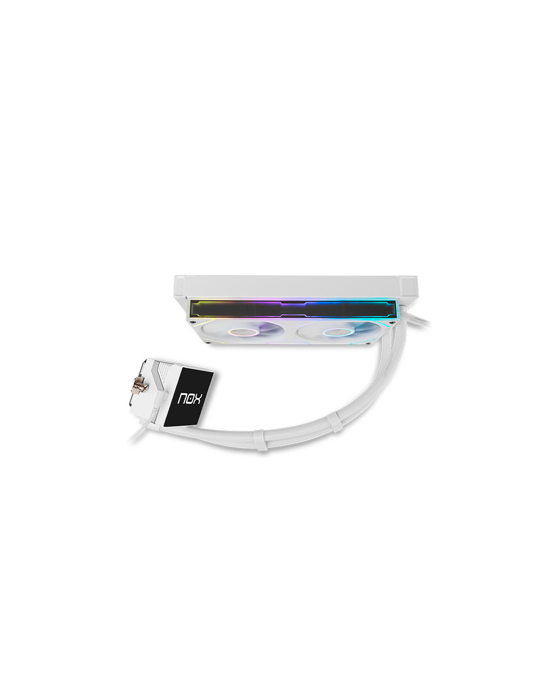 NOX Hummer M-240 LCD|Kit RL Magnético ARGB Blanco. Tipo: Sistema de refrigeración líquida todo en uno, Diámetro de ventilador: 12 cm, Presión máxima de aire: 1,59 mmH2O, Tipo de soporte: Hidráulico. Voltaje: 12 V. Color del producto: Blanco