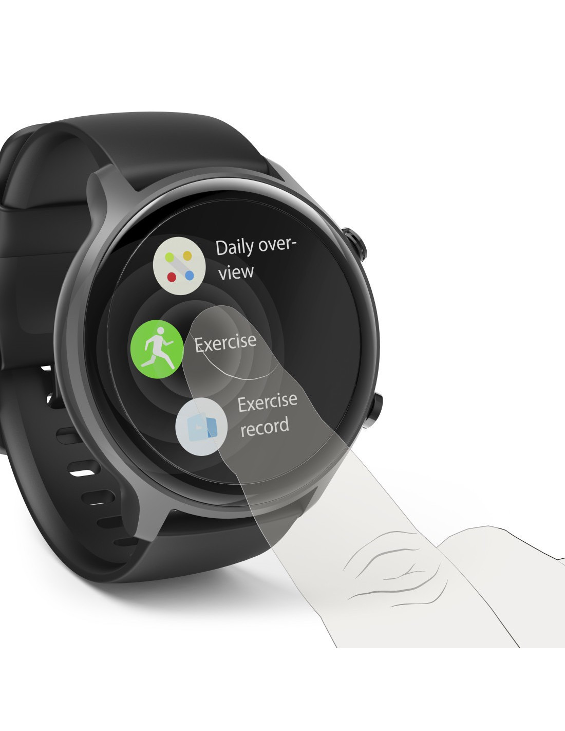 Pantalla táctil LCD de 1,28" a todo color fácil de manejar.