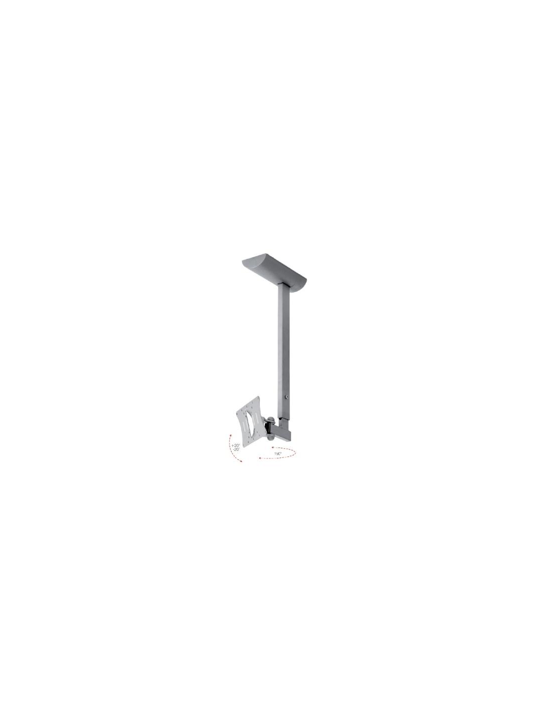 • Peso máximo de 20 kgs • VESA 50/ 75/ 100 • Distancia desde la pared 500 mm (mÍ­nimo) - 850 mm (max) • Soporte de techo giratorio 190º e inclinable vertical.+-20º con un brazo extensible. • Color plata.