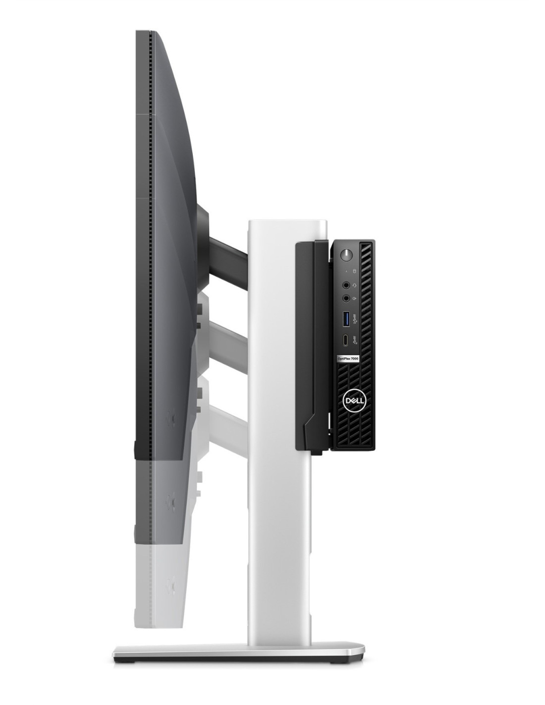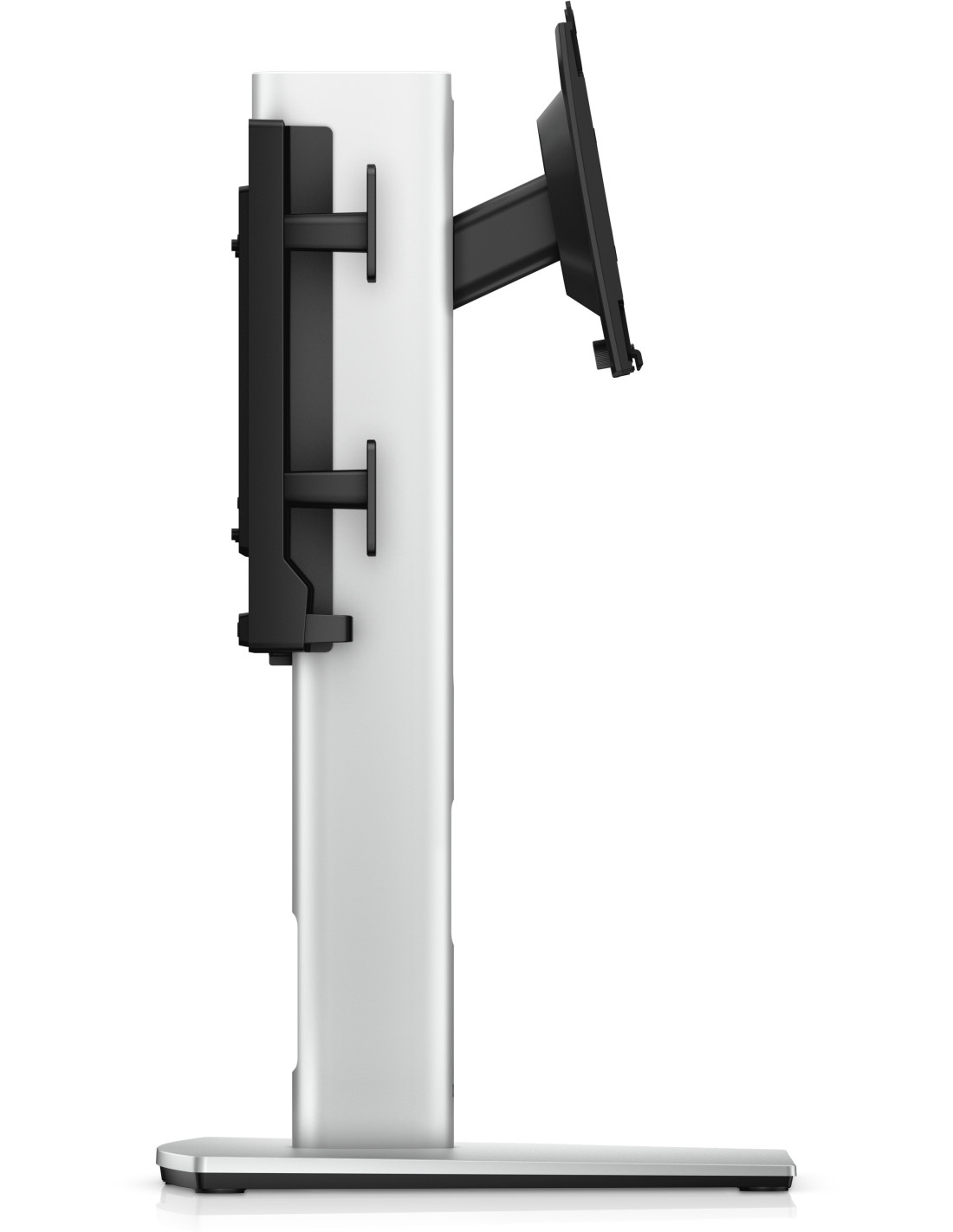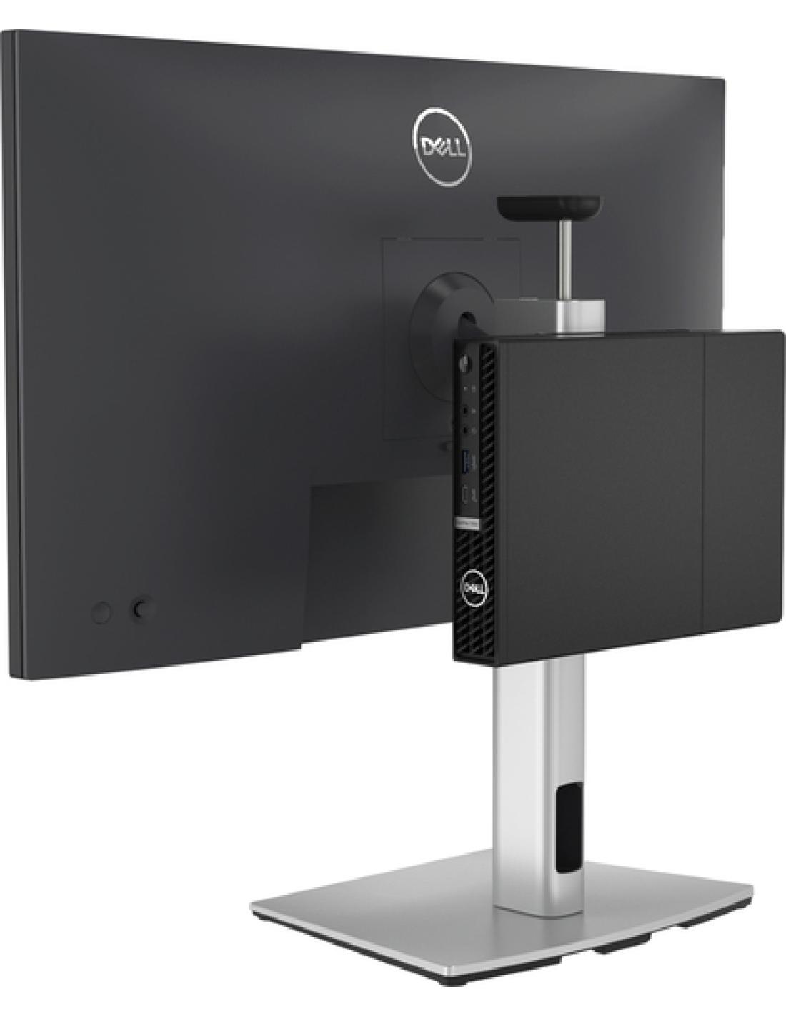DELL Soporte todo en uno para Pro micro - MFS22. Capacidad máxima de peso: 5,8 kg, Tamaño mínimo de pantalla: 48,3 cm (19"), Tamaño máximo de pantalla: 68,6 cm (27"), Compatibilidad con interfaz de montaje (min): 100 x 100 mm, Compatibilidad con interfaz de montaje (max): 100 x 100 mm. Ajustes de altura, Ángulo de giro (alcance): 45 - 150°, Ángulo de inclinación: -5 - 21°. Color del producto: Plata, Negro