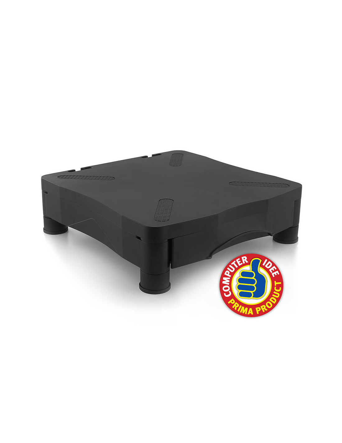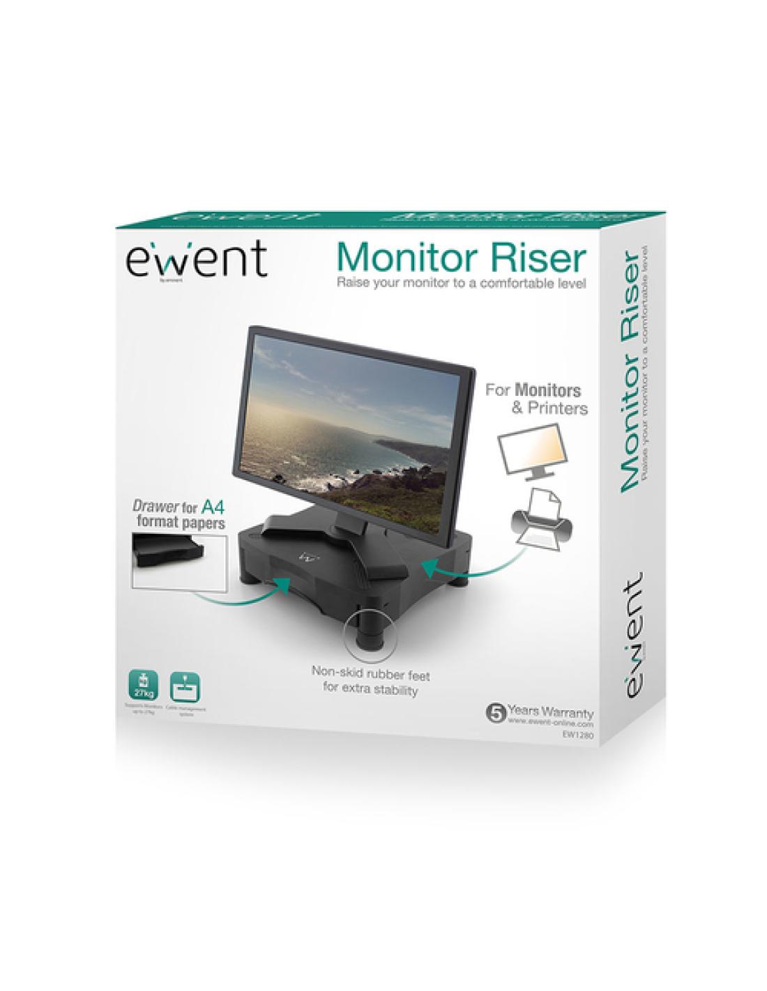 El Elevador de Monitor EW1280 eleva su monitor a una altura cómoda para usted. Organice sus cables con el sistema de cableado. En su útil cajón podrá almacenar sus folios A4 y su material de escritorio. Sus patas de goma antideslizantes garantizan la estabilidad del Elevador de Monitor.