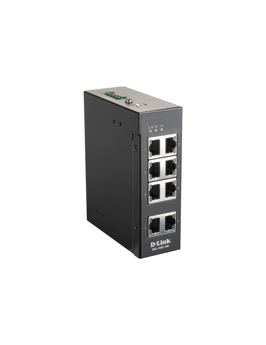 D-Link DIS-100E-8W. Tipo de interruptor: No administrado, Capa del interruptor: L2. Puertos tipo básico de conmutación RJ-45 Ethernet: Fast Ethernet (10/100), Cantidad de puertos básicos de conmutación RJ-45 Ethernet: 8. Bidireccional completo (Full duplex). Tabla de direcciones MAC: 1000 entradas. Estándares de red: IEEE 802.3x. Voltaje de entrada DC: 12 - 58 V. Montaje de pared, Montaje en rack
