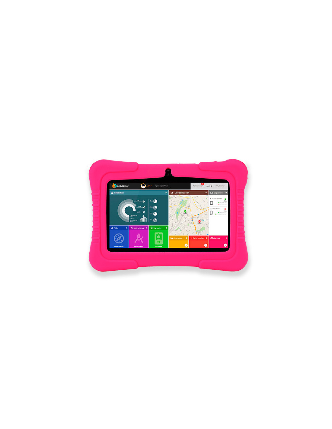 La seguridad nuestros peques es lo más importante por eso la Tablet kids incorpora un doble sistema de control parental con que el que podrás establecer horarios de uso, conocer estadísticas, crear filtros de aplicaciones y Web.