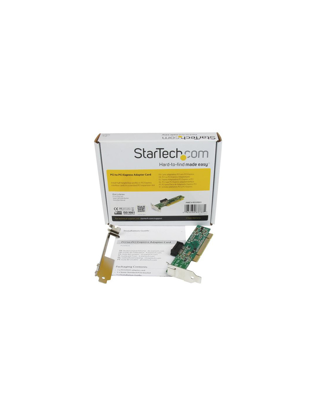 StarTech.com Tarjeta Adaptadora PCI a PCI Express PCIe. Interfaz de host: PCI, Interfaz de salida: PCIe, Estándar de la tarjeta de expansión: PCI 2.3. Certificación: CE, FCC, TAA. Circuito integrado: Pericom - PI7C9X111SL. Ancho: 60 mm, Profundidad: 135 mm, Altura: 20 mm. Ancho del paquete: 140 mm, Profundidad del paquete: 173 mm, Altura del paquete: 33 mm