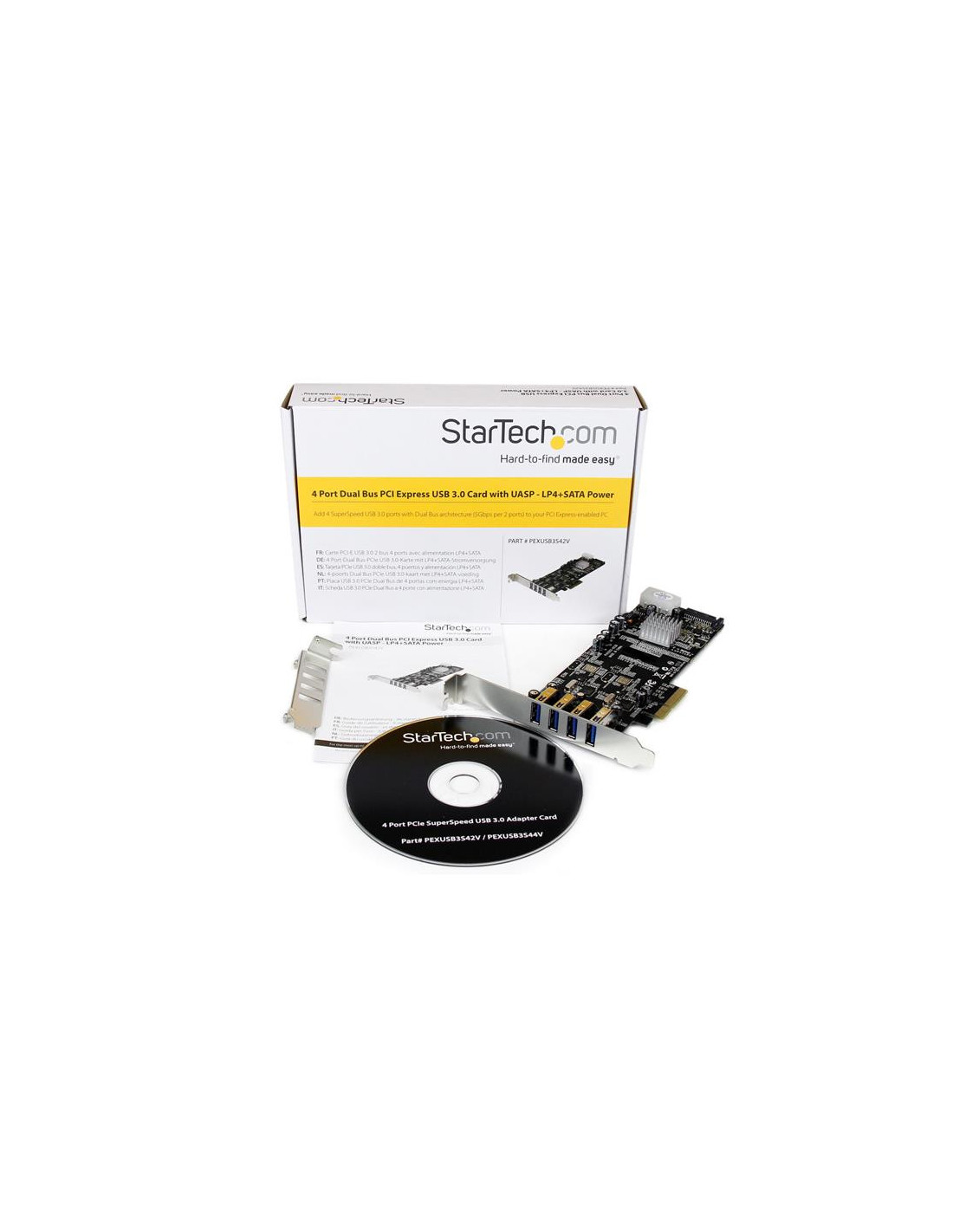 StarTech.com Adaptador Tarjeta PCI Express PCI-E 4 Puertos USB 3.0 UASP Bus Doble con Alimentación Molex SATA. Interfaz de host: PCIe, Interfaz de salida: USB 3.2 Gen 1 (3.1 Gen 1), Factor de forma de la tarjeta de expansión: Full-height / Low-profile. Longitud máxima del cable: 3 m, Certificación: CE, FCC. Circuito integrado: 2 x Renesas / NEC - µPD720202, Tasa de transferencia de datos (max): 5 Gbit/s. Sistema operativo Windows soportado: Windows 10 Education, Windows 10 Education x64, Windows 10 Enterprise, Windows 10 Enterprise x64,..., Sistema operativo de servidor soportado: Windows Server 2008 R2, Windows Server 2012, Windows Server 2012 R2. Ancho: 15 mm, Profundidad: 167 mm, Altura: 120 mm