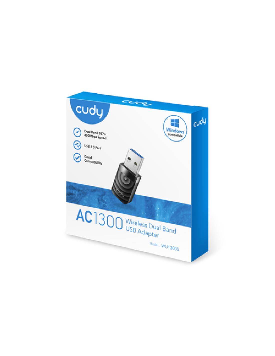 Cudy WU1300S. Tecnología de conectividad: Inalámbrico, Interfaz de host: USB, Interfaz: WLAN. Rango máximo de transferencia de datos: 867 Mbit/s, Estándar Wi-Fi: Wi-Fi 5 (802.11ac), Banda Wi-Fi: Doble banda (2,4 GHz / 5 GHz). USB con suministro de corriente. Color del producto: Negro
