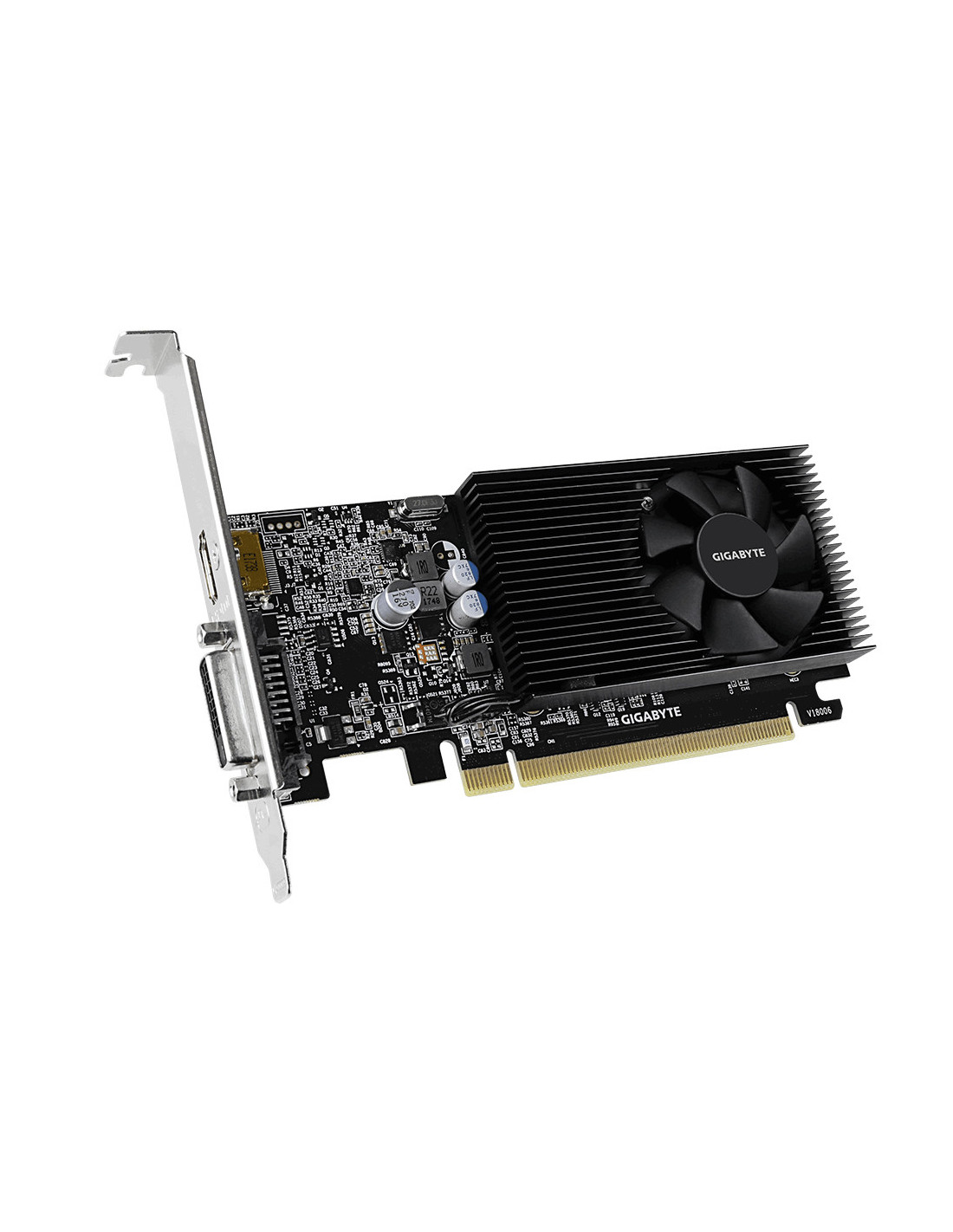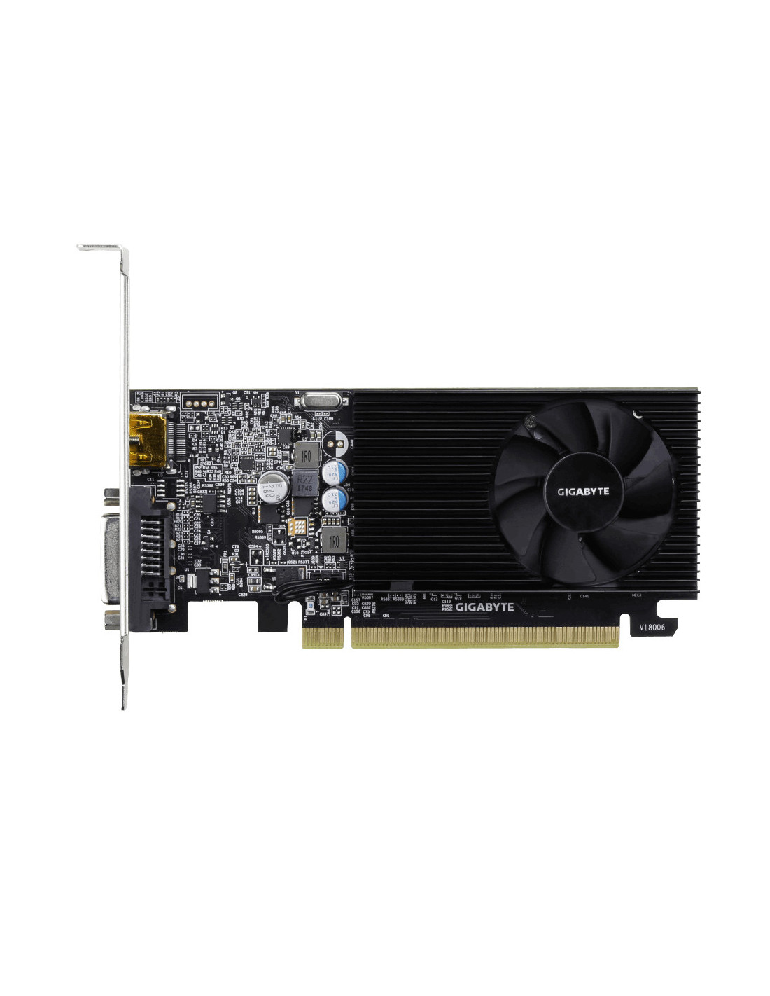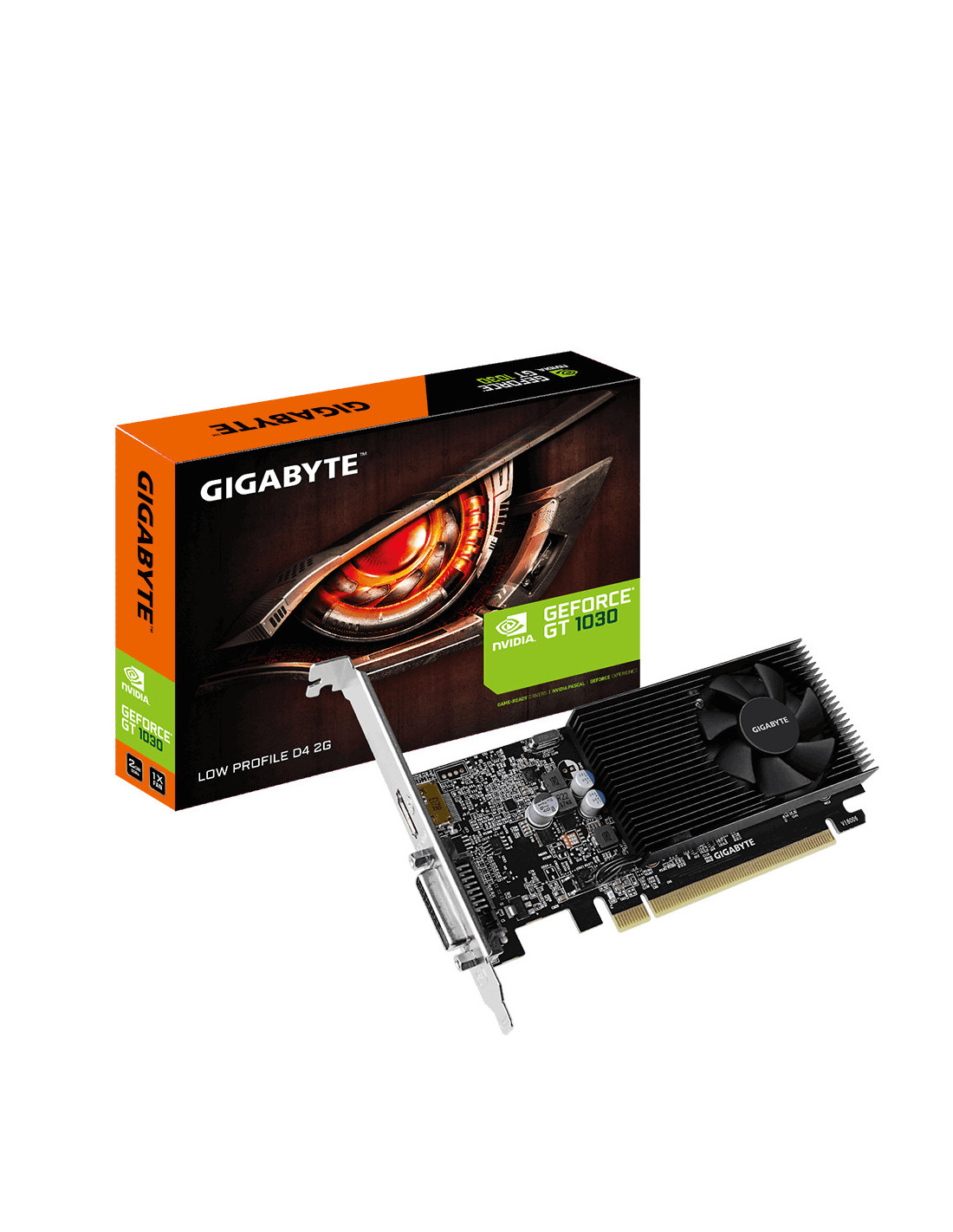 GIGABYTE GeForce GT 1030 2GB. Familia de procesadores de gráficos: NVIDIA, Procesador gráfico: GeForce GT 1030, Frecuencia del procesador: 1151 MHz. Capacidad memoria de adaptador gráfico: 2 GB, Tipo de memoria de adaptador gráfico: GDDR4, Ancho de datos: 64 bit, Velocidad de memoria del reloj: 2100 MHz. Máxima resolución: 4096 x 2160 Pixeles. Versión DirectX: 12.0, Versión OpenGL: 4.5, Dual Link DVI. Tipo de interfaz: PCI Express x16 3.0. Tipo de enfriamiento: Activo, Número de ventiladores: 1 Ventilador(es)