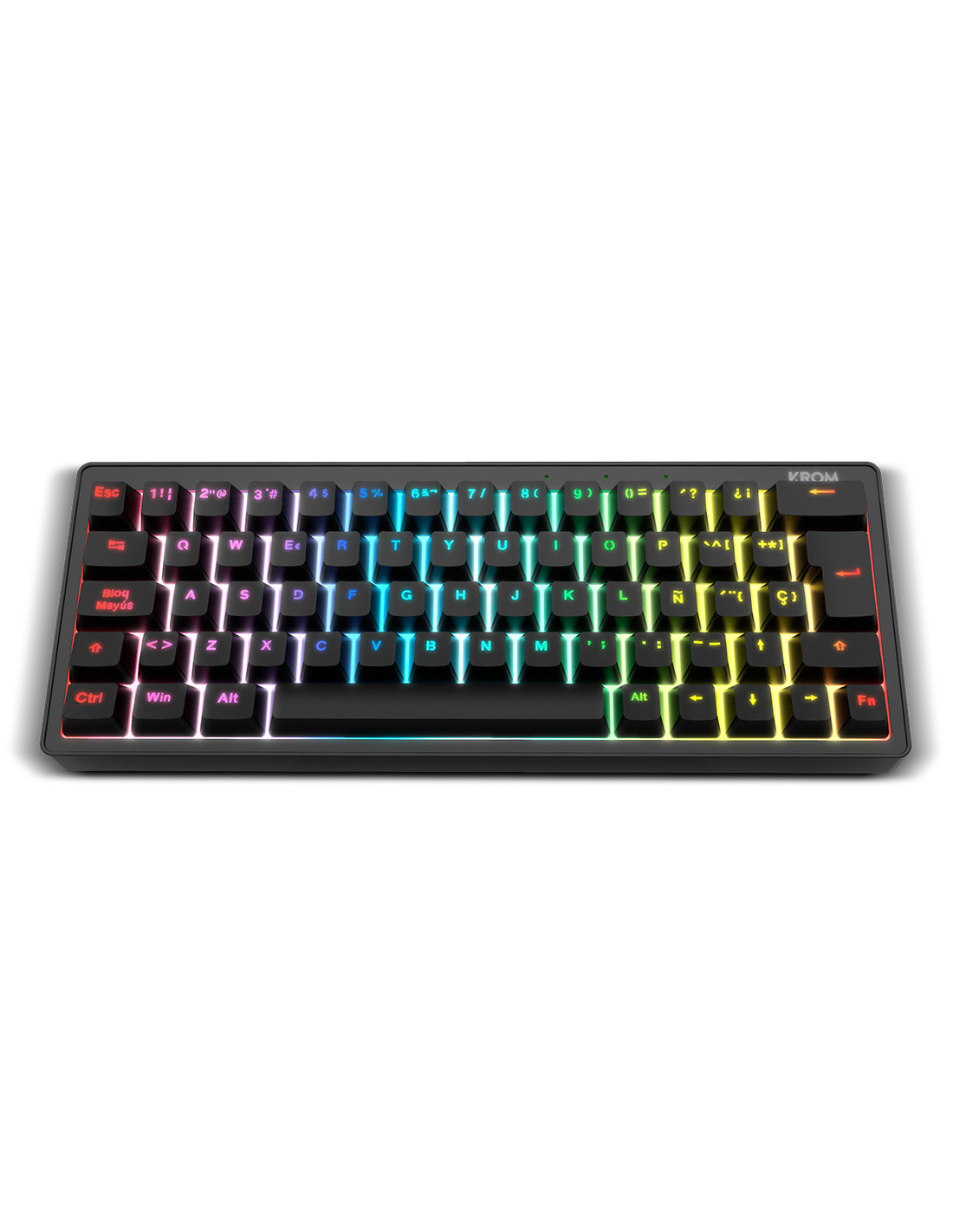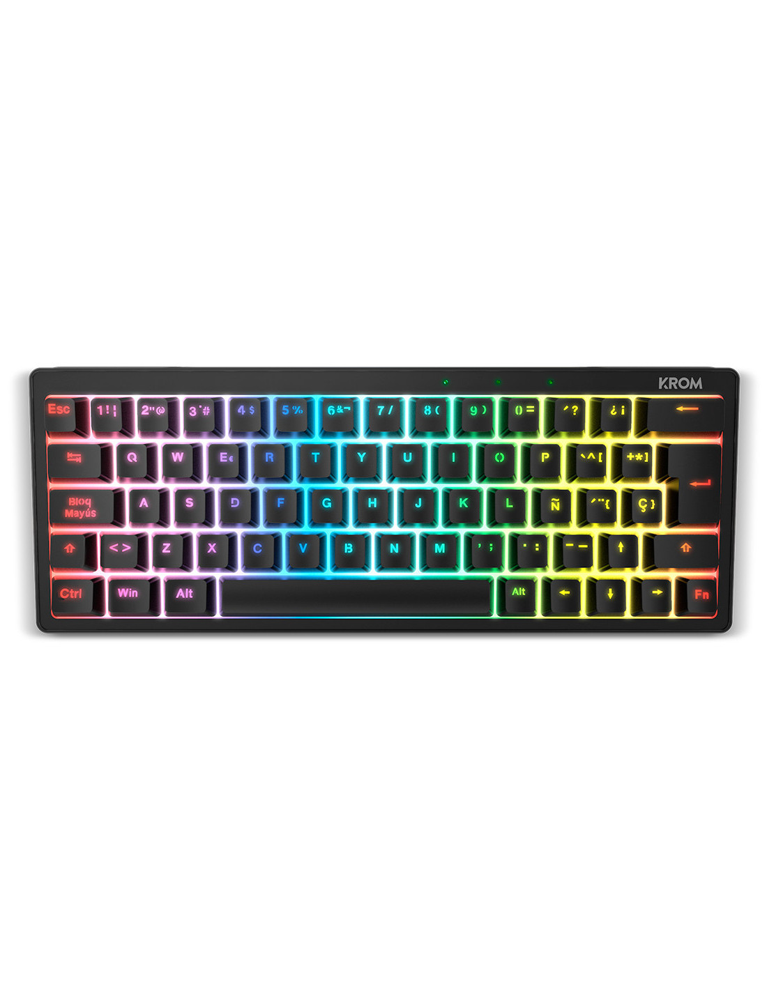 Krom Kreator es el teclado 60% que viene a revolucionar el mercado. Krom Kreator es un teclado gaming ultracompacto que incluye teclas de doble inyección, que te permitirá ganar espacio mientras te alzas con la victoria gracias a su formato 60%. Este mini teclado mecánico con RGB incorpora switches mecánicos lubricados, lo que hace que sus teclas se accionen de una manera más rápida al tener menos rozamiento, mientras minimizas el ruido, haciéndote ganar ventaja sobre tus enemigos.