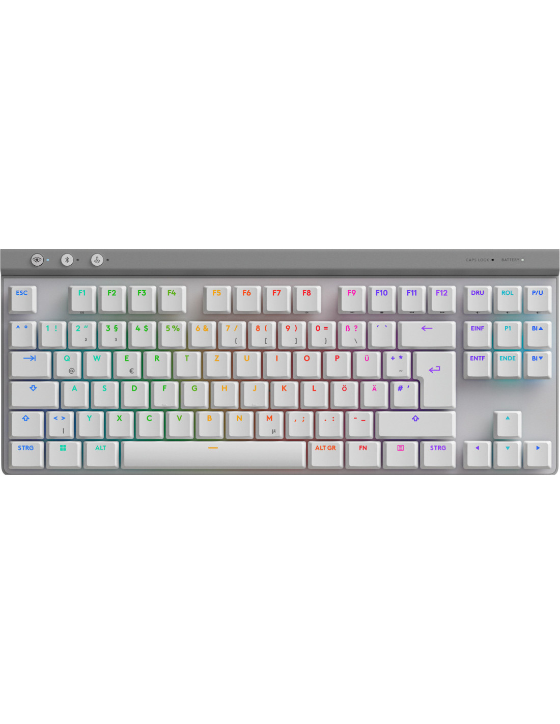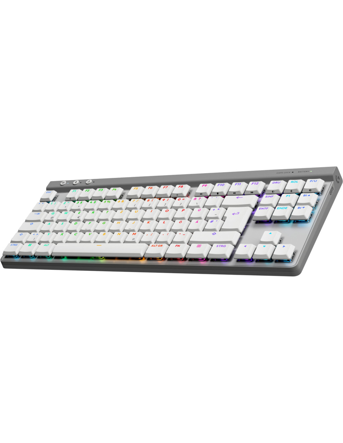 Logitech G G515 LIGHTSPEED TKL. Formato del teclado: Tenkeyless (sin zona numérica) (80 - 87%). Estilo de teclado: Derecho. Tecnología de conectividad: Inalámbrico, Interfaz del dispositivo: RF Wireless + Bluetooth, Interruptor del teclado: Interruptor mecánico, Diseño de teclado: QWERTZ. Tipo de retroiluminación: LED RGB. Longitud de cable: 1,8 m. Uso recomendado: Juego. Color del producto: Blanco