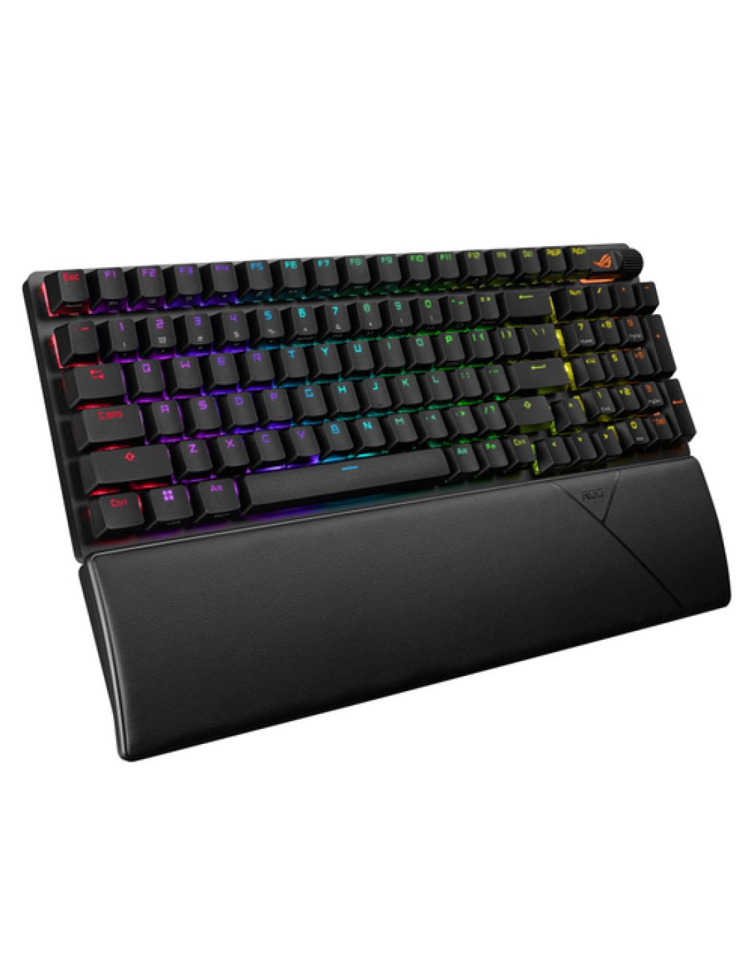 ASUS ROG Strix Scope II 96 Wireless. Formato del teclado: 96%, Tecnología de conectividad: Inalámbrico y alámbrico, Interfaz del dispositivo: USB + RF Wireless + Bluetooth, Interruptor del teclado: Interruptor mecánico. Tipo de retroiluminación: LED RGB, Descansa muñecas. Longitud de cable: 2 m. Uso recomendado: Juego. Color del producto: Negro