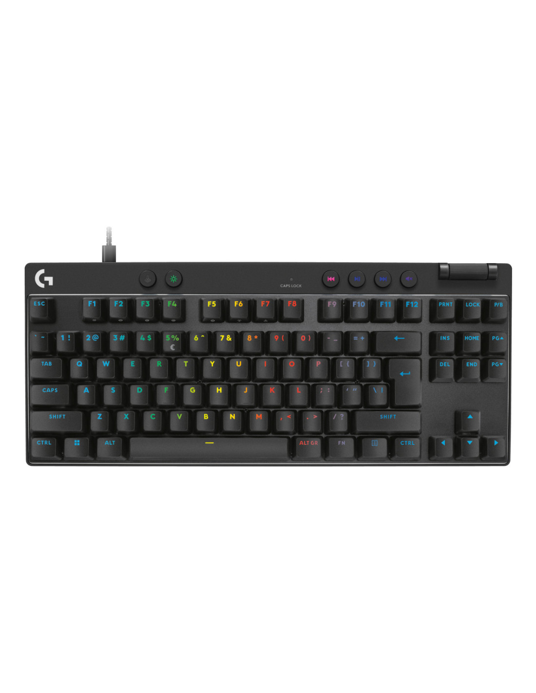 Logitech G PRO X TKL RAPID. Formato del teclado: Tenkeyless (sin zona numérica) (80 - 87%). Estilo de teclado: Derecho. Tecnología de conectividad: Alámbrico, Interfaz del dispositivo: USB, Interruptor del teclado: Magnetic-mechanical key switch, Diseño de teclado: QWERTY. Tipo de retroiluminación: LED. Longitud de cable: 1,8 m. Uso recomendado: Juego. Color del producto: Negro