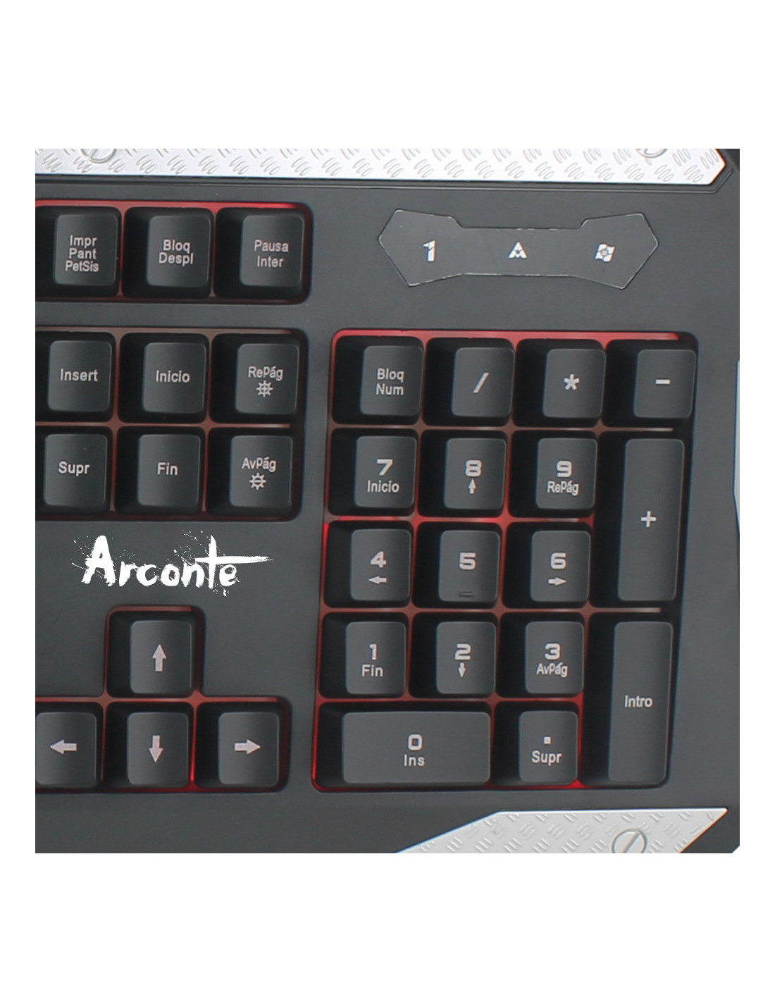 Arconte viene preparado no sólo para mejorar tus skills como gamer (con sus imprescindibles teclas de acceso rápido y las siempre útiles función Anti-Ghosting y modo InGame), sino también para ayudarte a jugar durante horas previniendo el cansancio, gracias a su perfecto diseño ergonómico con reposamuñecas (que ocupará el espacio justo en el escritorio).
