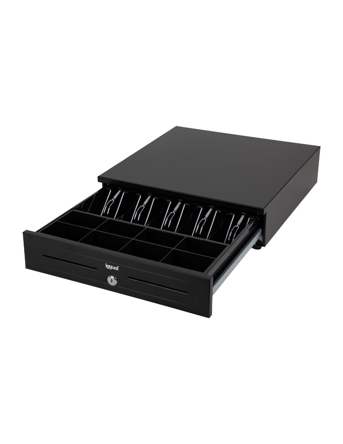 El IRON-HD de iggual es el cajón portamonedas definitivo para aquellos negocios que requieren un equipo robusto, fiable y preparado para los volúmenes de trabajo más altos. Fabricado en acero galvanizado de alta densidad, este modelo está diseñado para durar, incluso en las condiciones más exigentes del entorno comercial.