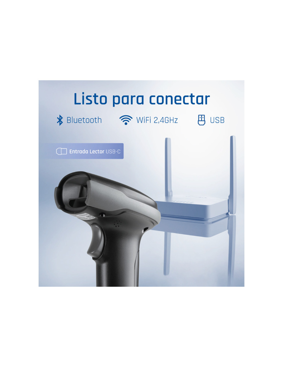 El lector de códigos de barras 2D Bluetooth y WiFi 2.4G iggual L2DBT-G-AX combina compatibilidad, velocidad, precisión y movilidad para adaptarse a cualquier entorno de trabajo. Su conexión triple (USB, Bluetooth y WiFi 2,4 GHz) garantiza máxima flexibilidad, con alcances de hasta 90 m en 2,4 GHz y 60 m en Bluetooth. Además, se carga con USB-C