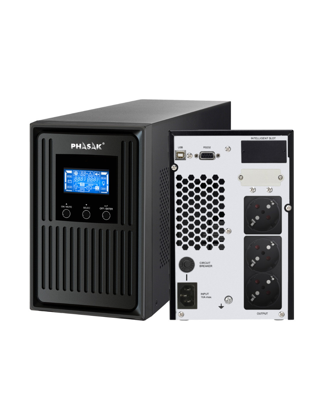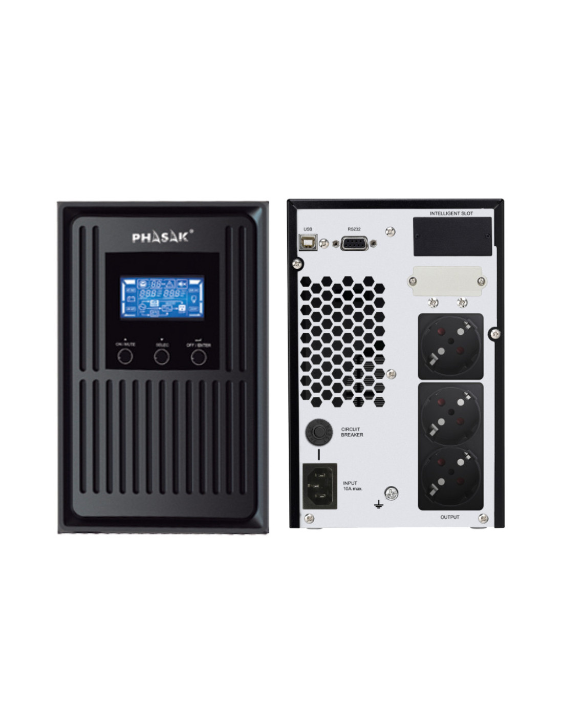 El SAI Phasak Conqueror Pro Online 1000 VA – PH 8010 es una solución de alimentación ininterrumpida (SAI) de vanguardia, diseñada para ofrecer una protección eléctrica impecable para equipos de menor consumo pero igualmente críticos. Este modelo compacto pero potente asegura la continuidad de tus dispositivos esenciales mediante tecnología online avanzada, garantizando una protección total ante interrupciones y anomalías en la red eléctrica.