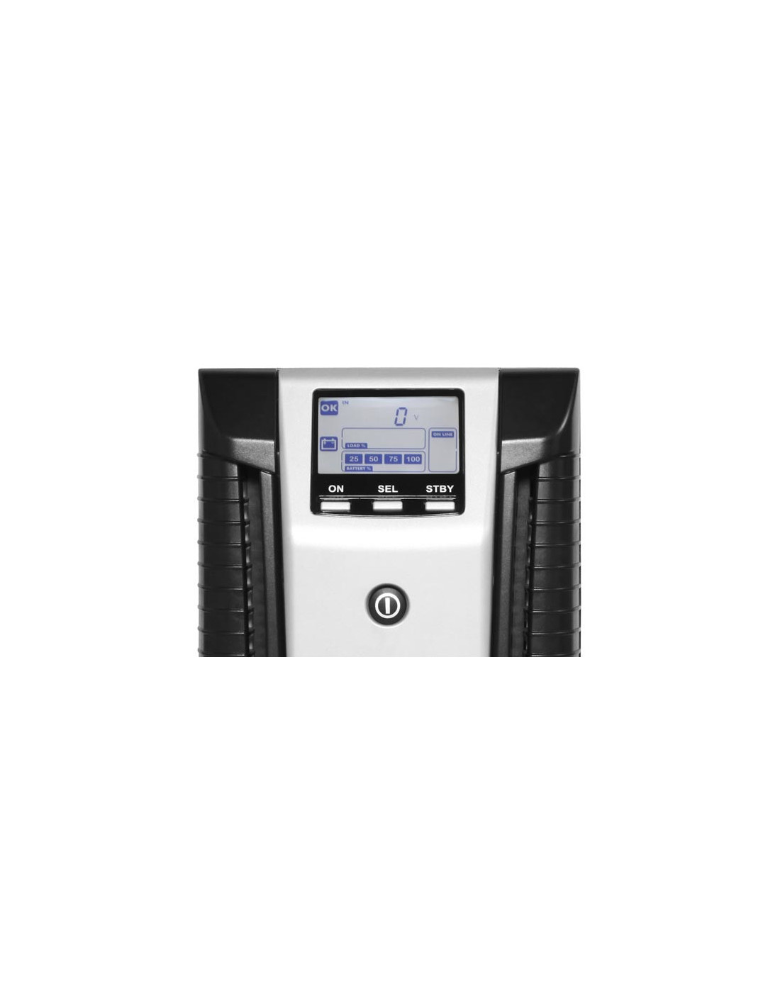 La parte del sinóptico ha sido completamente re diseñada introduciendo una pantalla LCD que visualiza además del estado del UPS todas las lecturas de entrada salida y batería. El inverter ha sido completamente re diseñado al igual que el estadio de control con microprocesador, para poder dar una mayor eficacia y posibilidad de configuración.