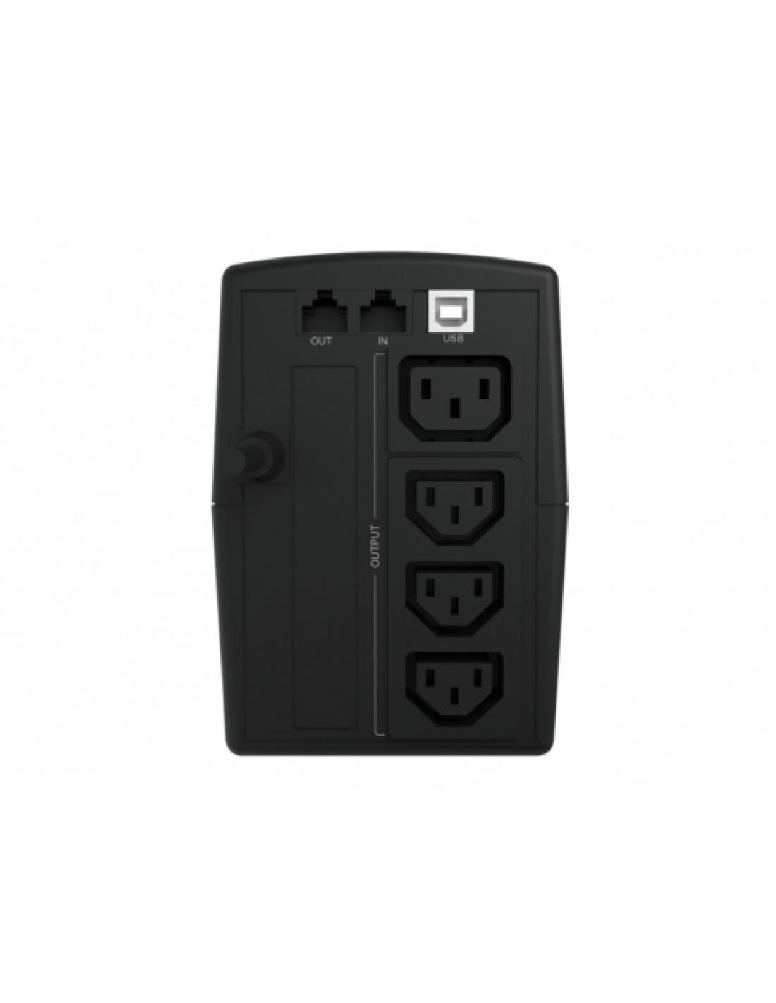 Conceptronic ZEUS02E. Topología UPS: Línea interactiva, Capacidad de potencia de salida (VA): 0,85 kVA, Potencia de salida: 480 W. Tipo de salida AC: IEC Jumpers, Cantidad de salidas AC: 4 salidas AC. Voltaje de la pila: 12 V, Tiempo de recarga (90%): 8 h. Factor de forma: Compacto, Color del producto: Negro. Cables incluidos: Cable de alimentación de salida, Cable USB