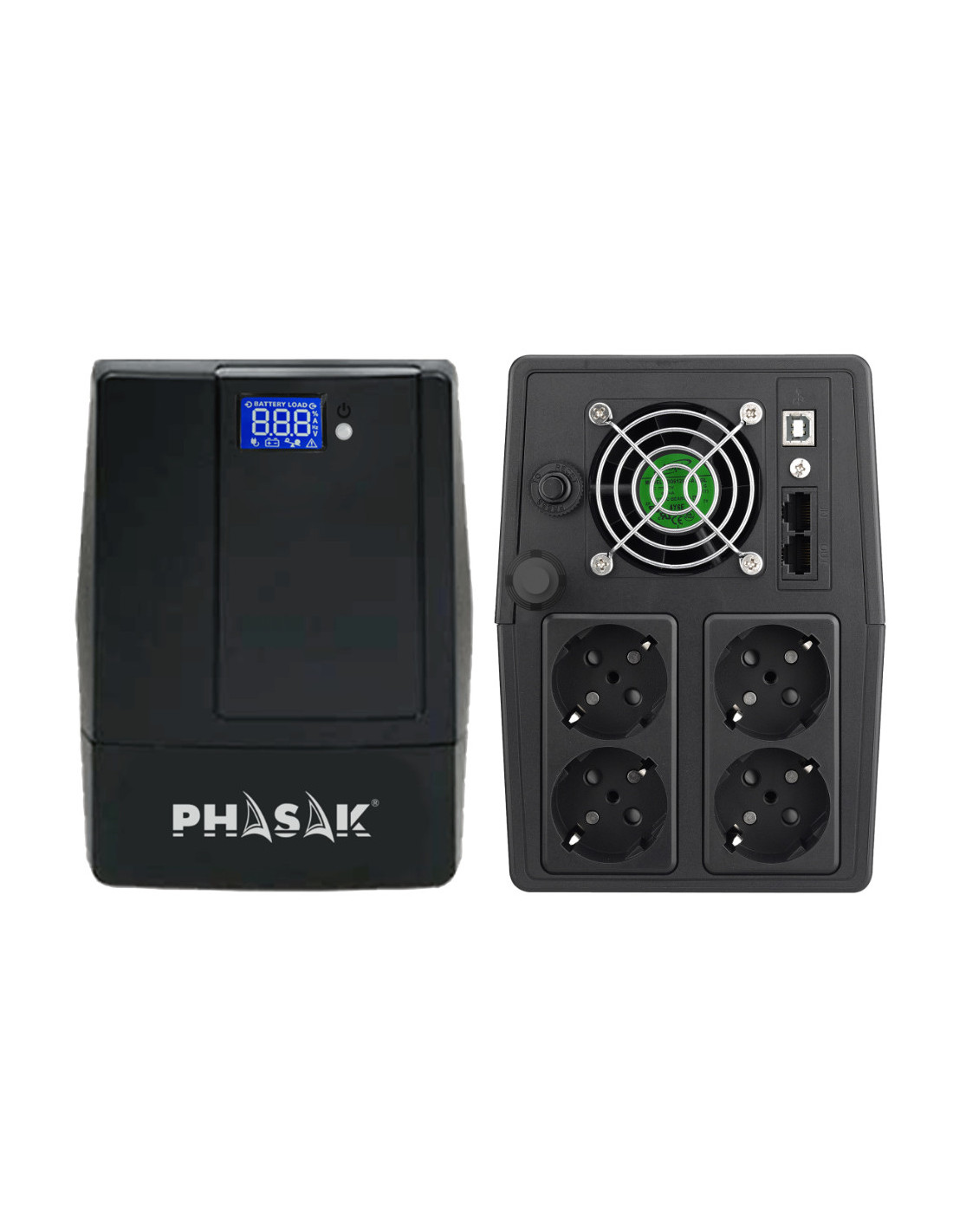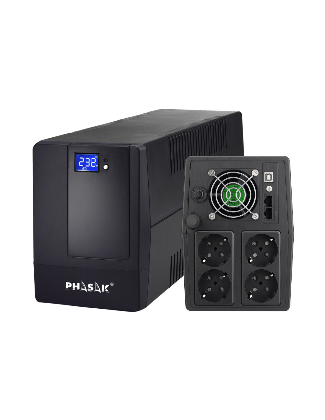 El SAI Phasak Essential Interactivo de 2000 VA, modelo PH 9420, es una solución robusta y de alta capacidad destinada a ofrecer protección eléctrica avanzada para equipos críticos en entornos tanto domésticos como de oficina. Su diseño incorpora tecnología interactiva, lo que lo hace especialmente adecuado para manejar fluctuaciones eléctricas y asegurar un suministro de energía constante y fiable. A continuación, se detallan las características principales de este modelo y cómo cada una aporta a una solución integral de protección de energía.