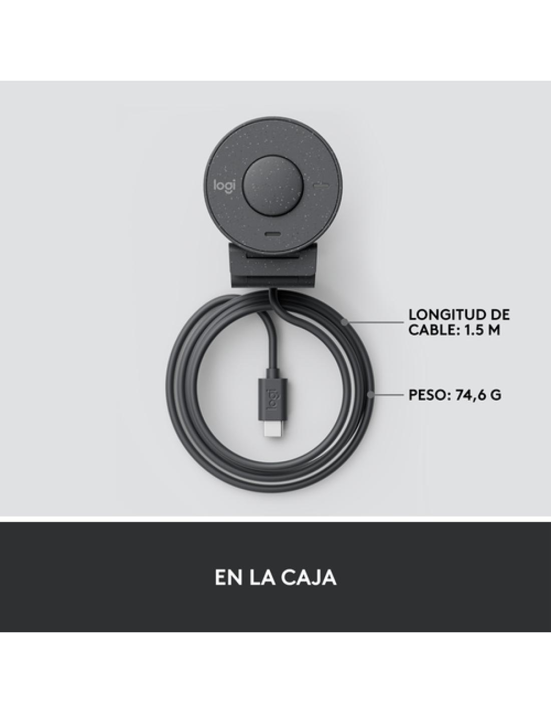 Logitech Brio 300. Megapixeles: 2 MP, Máxima resolución de video: 1920 x 1080 Pixeles, Tipo de cámara HD: Full HD. Interfaz: USB, Color del producto: Grafito, Tipo de montaje: Recortar. Sistema operativo MAC soportado: MacOS, Otros sistemas operativos soportados: ChromeOS. Certificados de sostenibilidad: CarbonNeutral, Forest Stewardship Council (FSC). Ancho: 53,1 mm, Profundidad: 45 mm, Altura: 65,6 mm